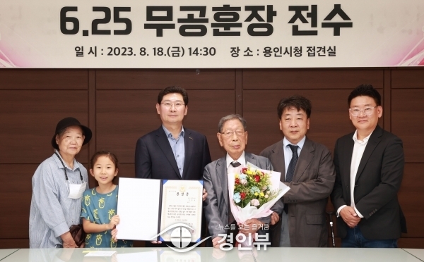 이상일 용인특례시장은 6·25 전쟁에 참전해 공로를 인정받은 이문보씨와 고 박창식 하사, 고최종문 상병, 고 이용우 이병의 유족들에게 직접 훈장을 전달했다.