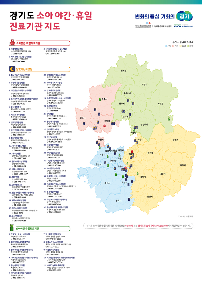 한편, 경기도 달빛어린이병원 현황은 경기도 누리집(gg.go.kr)에서 확인할 수 있다.
