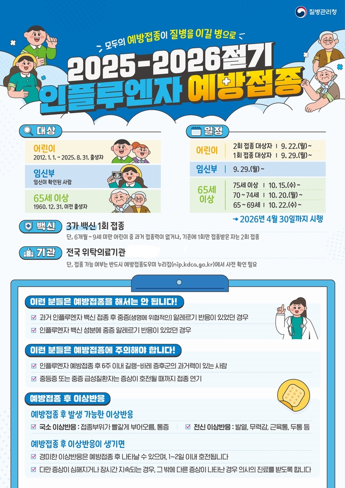 그러면서 “국내외에서 유행 중인 인플루엔자 바이러스인 A형 H3N2에서 일부 변이가 확인되고 있지만, 현재 접종 중인 백신은 여전히 효과가 있는 것으로 평가되고 있다”고 설명했다. 65세 이상 어르신 독감 접종률은 78.3%, 어린이는 63.6%로 지난 절기보다 높은 수준이다.