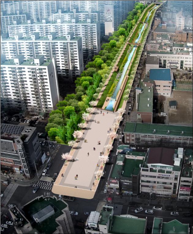‘굴포천 생태하천 복원사업’은 도시화 과정에서 콘크리트로 덮여 본래의 기능을 잃었던 하천을 도심 속 수변·친수·생태 공간으로 조성하는 사업이다. 부평1동 행정복지센터에서 부평구청까지 1.5㎞구간이며, 총 845억원(생태하천 복원사업 666억원·하수관로 정비사업 179억원)의 사업비가 들어갔다.