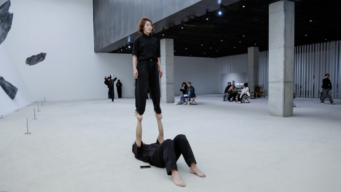 지난 11월 29일(토)에는 코어레주(Corelage, 김민혁, 정성택, 양설희)가 참여한 첫 번째 프로그램 <댄스 콜라주>가 진행됐다. 무용을 기반으로 한 세 명의 퍼포머가 전시 작품에서 영향을 받아 제작한 사운드를 중심으로 즉석 퍼포먼스를 펼쳤다.