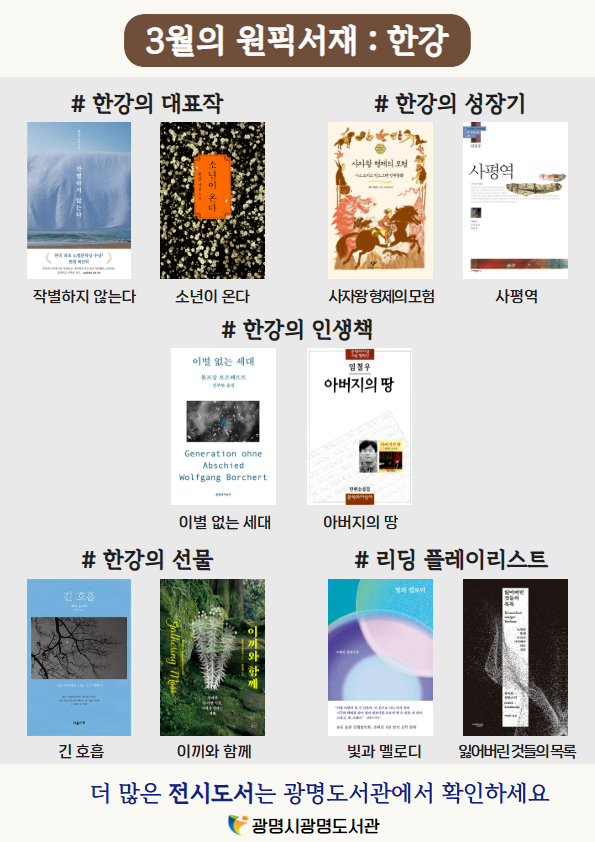 자세한 사항은 광명도서관 홈페이지(gmlib.gm.go.kr)에서 확인할 수 있다.