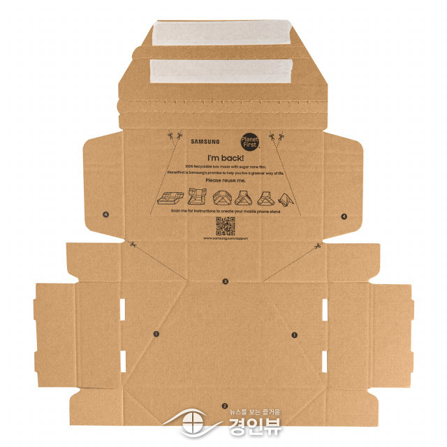 특히 친환경 소재를 활용한 제품 배송 박스는 사용 후 다른 용도로도 활용할 수 있도록 ‘업사이클링 디자인’을 적용했다. 삼성전자는 박스 내부의 QR코드를 통해 배송 박스를 모바일 기기 거치대로 쉽게 조립할 수 있는 동영상을 제공한다.