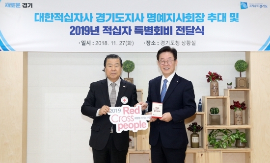이재명 경기도지사가 대한적십자사 경기지사 명예지사회장에 추대됐다.