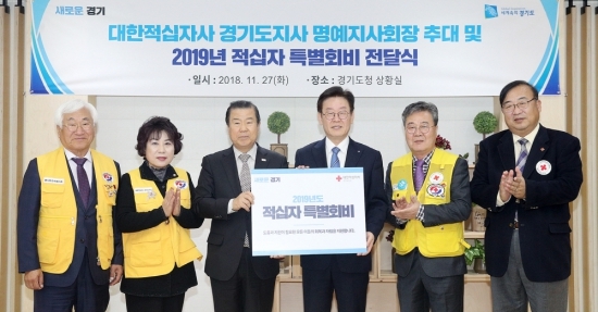 대한적십자사 경기지사는 이재명 지사의 특별회비를 시작으로 다음 달부터 내년 4월말까지 2019년도 적십자회비 집중모금 행사를 시작한다. 대한적십자사 경기지사의 최근 5년간 평균 모금액은 91억원이다.