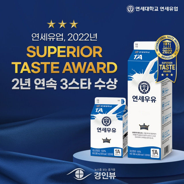연세대학교 연세유업의 ‘전용목장 연세우유’가 최근 진행된 국제식음료품평회(이하 Superior Taste Award)에서 최우수 미각상인 등급인 3스타를 2년 연속 수상했다고 13일 밝혔다.