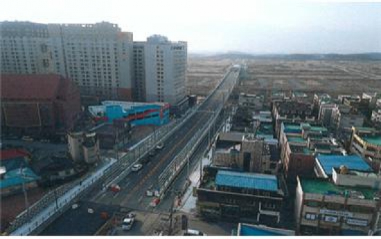 총연장 400m, 사업비 228억원이 소요된 갈평고가차도는 경부선 철길을 가로지는 교량을 설치하는 공사의 특성상 2015년부터 약 3년간의 공사를 진행하는 어려움이 있었다.