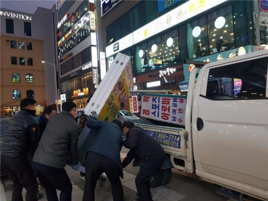 특히 야간에 집중적으로 설치되는 마사지샵, 노래방 등의 에어라이트 25개를 행정대집행(수거)했으며 15일의 공고기간을 거쳐 1개월 보관 후 폐기할 예정이다. 또한 지난 10월 단속에 적발되지 않은 새로 설치된 에어라이트 20여개에 대해서도 계고장을 발부했다.