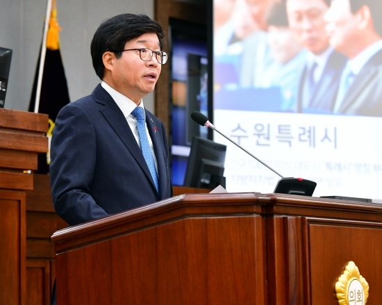 ▲ 염태영 수원시장이 수원시의회 ‘제340회 제2차 정례회’에서 시정연설을 하고 있다.