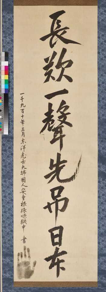 이날 공개되는 안중근 의사의 유묵은 ‘장탄일성 선조일본’이란 8글자로 큰 소리로 길게 탄식하며, 일본의 멸망을 미리 조문한다는 뜻이다. 안 의사가 일본제국 관동도독부(여순감옥과 재판부를 관장)의 고위 관료에게 건넨 작품으로, 이후 그 관료의 후손이 보관했다. 죽음을 앞두고도 흔들림 없었던 안 의사의 기개와 역사관, 세계관이 담긴 것으로 평가받고 있다. 국내에 들어온 적은 없다.