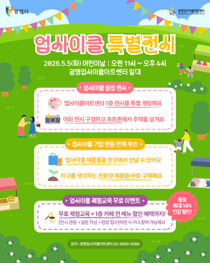 광명시 광명업사이클아트센터는 오는 5월 5일 어린이날을 맞아 자원순환 가치를 예술과 체험으로 즐기는 ‘업사이클 특별전시’를 운영한다.