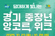 경기도가 중장년 세대의 도약과 성장을 지원하기 위해 23일부터 28일까지 6일간 ‘경기 중장년 앙코르 위크(week)’을 개최한다. ‘앙코르’는 주된 일자리에서 퇴직한 베이비부머가 인생 2막을 새롭게 도약하길 바라는 마음을 담은 경기도 베이비부머 지원사업의 브랜드명이다. 도는 경기도 인구의 41%를 차지하는 중장년층을 ‘새로운 성장동력’으로 규정하고, 이들의 경험과 지혜가 사회 활력으로 이어질 수 있도록 다양한 프로그램을 마련했다. 행사는 ‘일자리·사회공헌·희망·갭이어’ 4개 주제로 구성되며, 중장년의 사회 참여 확대와 세대 간 공감 형성을 목표로 한다. 첫날인 23일 오후 1시 30분 수원역 노보텔에서는 ‘지속가능한 중장년 일자리 혁신 콘퍼런스’가 열린다. 서울대학교 김대일 교수가 ‘숨어 있는 성장동력, 중장년 계속근로와 경제성장’을 주제로 기조연설을 진행하고, ㈜상상우리 신철호 대표이사가 ‘초고령화 사회, 중장년 일자리 총량 확대를 위한 핵심 해법’을 제시한다. 또한 동국대학교 이영면 교수가 좌장을 맡아 중장년 일자리 정책 방향과 혁신 사례를 논의할 계획이다. 24일 오후 2시 경기주택도시공사 대강당에서는 사회공헌 포럼 ‘세상을 바꾸는 사회공헌, 세·바·