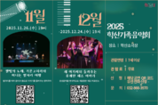 인천 미추홀학산문화원은 다가오는 연말을 맞아 가족이 함께 즐길 수 있는 특별한 공연 ‘학산가족음악회’의 11월과 12월 무대를 공개했다. 매달 다양한 장르의 음악으로 시민과 소통해온 학산가족음악회는 이번 두 차례 공연을 통해 따뜻한 계절감과 예술의 감동을 함께 전한다. 오는 11월 26일(수) 오후 7시, 현악 앙상블 거문고자리가 선보이는 '별빛의 노래, 거문고자리와 떠나는 별자리 여행'은 계절의 밤하늘을 수놓은 별자리를 따라 음악과 춤으로 이야기를 들려주는 창작국악 콘서트다. 거문고와 해금, 시타르, 타블라, 핸드팬 등 동서양의 악기가 어우러져 별과 신화의 세계를 섬세하게 그려내며, 왁킹댄스와 결합된 퍼포먼스가 무대에 생동감을 더한다. 별빛이 흐르는 듯한 선율과 신화를 닮은 음악적 상상력이 어우러진 이번 공연은 관객들에게 오감으로 느끼는 예술적 경험을 선사할 예정이다. 이어 12월 24일(수) 오후 7시, 미래재즈협회가 꾸미는 '세 아가씨가 들려주는 유쾌한 재즈 이야기'가 무대에 오른다. 재즈 보컬과 연주가 어우러진 밝고 경쾌한 무대로 크리스마스이브의 따뜻한 분위기를 더하며, 한 해의 마무리를 가족과 함께 즐길 수 있는 시간으로 채운다. 학산문화원 관계자는
