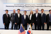 미국을 방문 중인 김동연 경기도지사가 화성 국제테마파크 조성사업의 원활한 추진을 위해 글로벌 콘텐츠기업 파라마운트사, 신세계프라퍼티와 함께 테마파크사업 진행 현황을 공유하고 향후 협력방안에 대해 의견을 나눴다. ▲ 현지시간 28일 오전 김동연 경기도지사가 화성 국제테마파크 조성 본격화를 위해 관계자들과 회담을 마치고 기념 촬영을 하고 있다. 김동연 지사는 미국 현지시각 28일 미국 보스턴에서 마리 막스(Marie Marks) 파라마운트 수석 부문장, 이임용 신세계프라퍼티 CSR상무와 회담을 진행했다. 김동연 지사는 “국제테마파크는 화성과 경기도민이 정말 오랫동안 기다렸던 프로젝트”라며 “먼저 당초 계획보다 2배 크기로 대규모 투자를 결정해 주신 신세계프라퍼티에 감사를 드린다. 지금의 관광·문화·엔터테인먼트 산업의 발전 추세로 봤을 때 그와 같은 투자확장을 한 것은 아주 적절했다고 생각한다”고 감사 인사를 전했다. 화성 국제테마파크 사업에는 당초 4조 5,000억 원이 투입될 계획이었으나 신세계프라퍼티는 단계적 개발을 통해 사업비를 9조 5,000억 원 규모로 늘리기로 했다. 5조가량 투자 금액이 확대된 것이다. 김 지사는 이어, 또 다른 협력 파트너인 파라마
