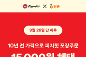 한국피자헛이 국내 대표 지역 생활 커뮤니티 당근의 ‘포장주문 서비스’ 입점을 기념해 9월 26일(금) 단 하루 신메뉴 ‘뉴욕 핫도그 피자’와 콜라 세트를 57% 파격 할인이 적용된 1만원대 가격에 제공하는 원데이 프로모션을 진행한다. 피자헛 X 당근 ‘포장주문 서비스’ 입점 기념 프로모션 포스터 이번 프로모션은 당근 앱을 통해 포장 주문하는 고객을 대상으로 진행되며, 이벤트 당일 모든 할인 메뉴 구매 시 1.25L 콜라가 무료로 증정된다. 여기에 당근 앱에서 사용할 수 있는 ‘당근머니’로 결제할 경우 구매 금액의 3%가 추가로 적립돼 고객이 느끼는 체감 혜택을 극대화했다. 프로모션의 하이라이트인 신메뉴 ‘뉴욕 핫도그 피자’는 정가 2만7200원에서 55% 할인된 1만2200원이라는 파격적인 가격에 구매할 수 있다. 당근머니 결제 시 적용되는 3% 적립 혜택까지 고려하면 실질 체감 가격은 57% 할인된 1만1834원까지 낮아진다. 이외에도 피자헛의 인기 스테디셀러 메뉴들이 할인 대상에 포함된다. ‘페퍼로니 러버’와 ‘콤비네이션’을 각각 정가 대비 반값 이상 할인된 1만3200원, 1만5200원에 만나볼 수 있어 합리적인 가격으로 다양한 메뉴를 즐길 수 있다.