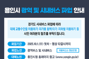 버스노조 1일부터 파업 예고… 전세버스 30대 투입·경전철 19회 증편·출퇴근 시 택시 집중 운행 협조 요청 등 용인특례시(시장 이상일)는 경기도버스노동조합협의회가 10월 1일부터 임금 협상 타결 전까지 운행을 전면 중단하겠다고 예고함에 따라 시민 불편을 최소화하기 위해 전세버스 30대를 투입하는 등 비상수송대책을 마련했다고 30일 밝혔다. 경기도버스노동조합협의회에 소속된 용인시 운수업체는 경남여객, 대원고속 등 5곳으로 이번 파업에는 광역버스와 시내버스 74개 노선 608대가 참여할 예정이다. 이는 용인시 전체 256개 노선 1051대의 57%에 해당한다. 반면, 마을버스 361대는 파업 대상에서 제외돼 정상 운행된다. 시는 29일부터 교통정책국장을 본부장으로 하는 비상수송대책본부(4개반 22명)를 설치해 선제 대응에 나섰다. 우선 10월 1일 첫차부터 파업이 예고된 노선 중 대체 교통수단 이용이 어려운 처인구와 기흥구를 중심으로 전세버스 30대를 투입한다. 시는 시내버스 운행이 중단되는 지역을 6개 거점으로 구분해 시민들이 용인경전철과 수인분당선 등 철도 교통망이나 용인터미널을 편리하게 이용할 수 있도록 전세버스를 주요 전철역과 터미널까지 운행할 계획이다